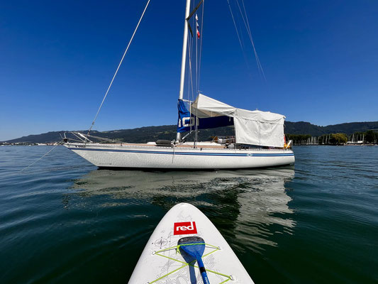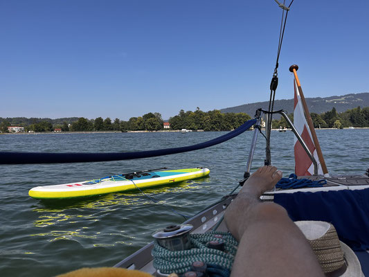 Mit etwas Verspätung starteten wir in unseren wohlverdienten Bootsurlaub. Einerseits wegen der 100 Jahr Feier unseres Clubs andererseits ließen wir noch eine Sturmfront am Sonntag über den See ziehen. Am Montag starteten wir Richtung Westen – Ziel – wo uns der Wind hintreibt. In Romanshorn angekommen trafen wir uns mit unserer Freundin Silvia. Wir verbrachten einen feinen, gemütlichen Abend. Am nächsten Tag, das Wetter passte. Sonnig, warm mit einem angenehmen Wind ging es Richtung Meersburg zum „Waschplätzle“. Hier mussten wir von Thomas Heger eine Kleinigkeit an unserer IOI richten lassen. Auch Silvia war mit von der Partie. Am Tag war baden und relaxen angesagt, am Abend fein essen in Meersburg. Der Wind trieb uns danach Richtung Konstanz, zum Yacht Club Konstanz. Am ersten Tag war ein Einkaufsbummel in Konstanz angesagt. Am zweiten Tag fuhren wir gleich in der Früh mit unseren Fahrrädern auf die Insel Reichenau. Hier ist zu erwähnen, dass die Fahrradwege in Konstanz der „volle Hammer“ sind. Großes Lob. Ein feines Frühstück in einer kleinen Bäckerei auf der Insel und wieder zurück zum Hafen. Überlingen darf natürlich auf unserer Bootsroute nicht fehlen. Hier ließen wir abermals eine Schlechtwetterfront hinter uns. Hier kamen dann Freunde von unserem Yachtclub dazu und wir verbrachten einen feinen Abend zusammen. Bei strahlendem Sonnenschein legten wir am nächsten Tag in Überlingen ab und segelten nach Bodman. Silvia war auch wieder mit dabei und die obligatorische Wanderung auf die Ruine Bodman und zum Kloster durfte natürlich nicht fehlen. Leider mussten wir dann wieder den Weg Richtung Osten in Angriff nehmen. Der erste Schlag führte uns nochmals nach Meersburg, am nächsten Tag dann mit einem Schlag in den Hafen Schwedenschanze. Hier gab es noch ein leckeres Abendessen zusammen. Es war wieder mal ein perfekter Urlaub auf dem See, mit sehr viel Sonnenschein, warmen Temperaturen, angenehmen Wind und tollen Bekanntschaften.